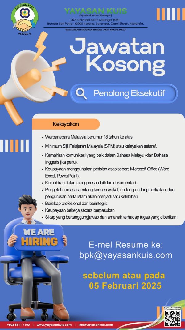 Iklan Kini Jawatan Kosong Terkini Yayasan KUIS Like serta Ikut Facebook Kami, follow Chanel WhatsApp Jawatan Kosong & Telegram Portal SPA9 untuk capaian pantas kekosongan jawatan daripada kami sekarang. Klik Iklan Jawatan