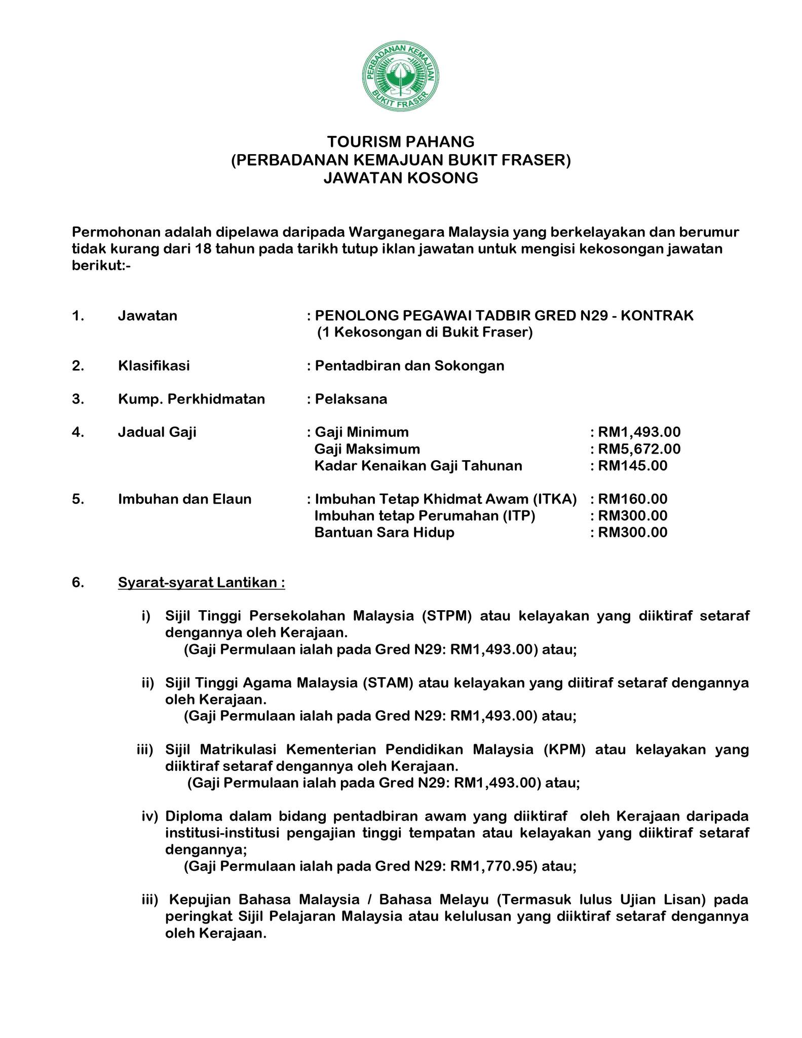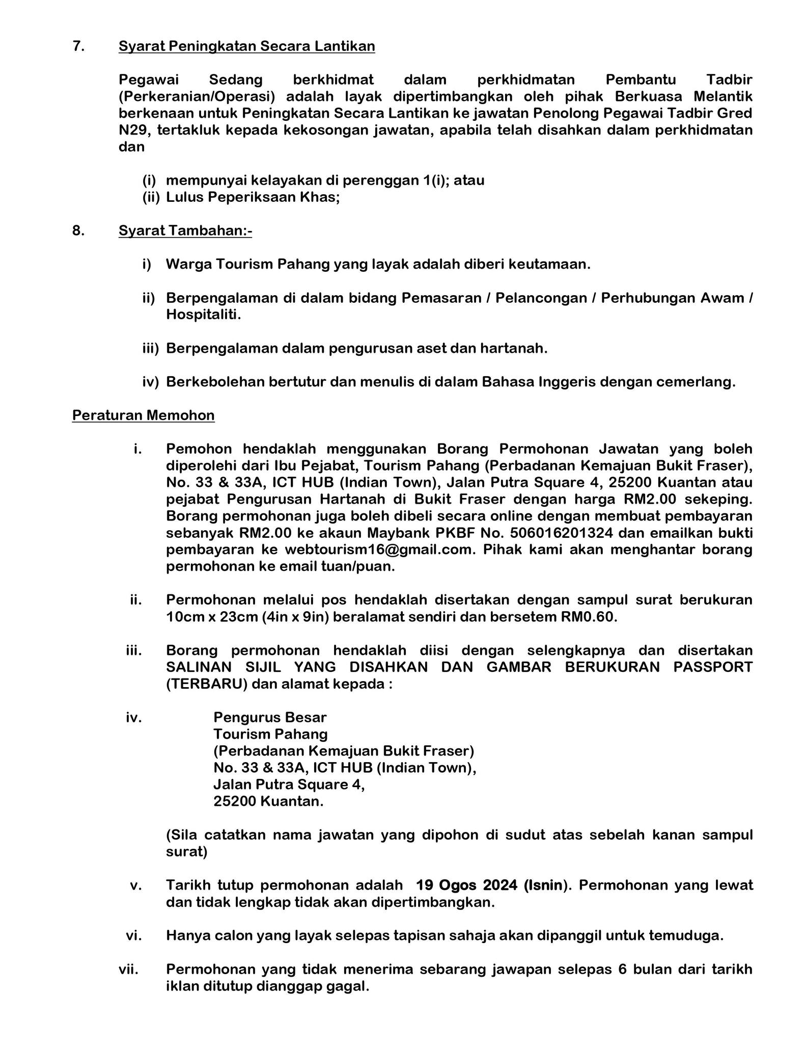 Iklan Kini Jawatan Kosong Tourism Pahang Perbadanan Kemajuan Bukit Fraser Like serta Ikut Facebook Kami, follow Chanel WhatsApp Jawatan Kosong & Telegram Portal SPA9 untuk capaian pantas kekosongan jawatan daripada kami sekarang. Klik Jawatan Disini