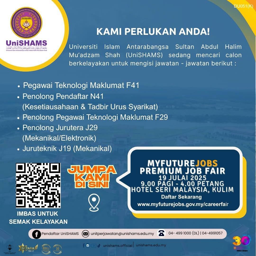 Iklan Kini Jawatan Kosong Universiti Islam Antarabangsa Sultan Abdul Halim Mu’adzam Shah (UniSHAMS)