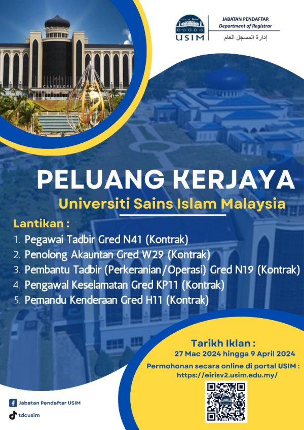 Iklan Kini Jawatan Kosong Universiti Islam Malaysia (USIM) Klik Jawatan Disini Like serta Ikut Facebook Kami, follow Chanel WhatsApp Jawatan Kosong & Telegram Portal SPA9 untuk capaian pantas kekosongan jawatan daripada kami sekarang.