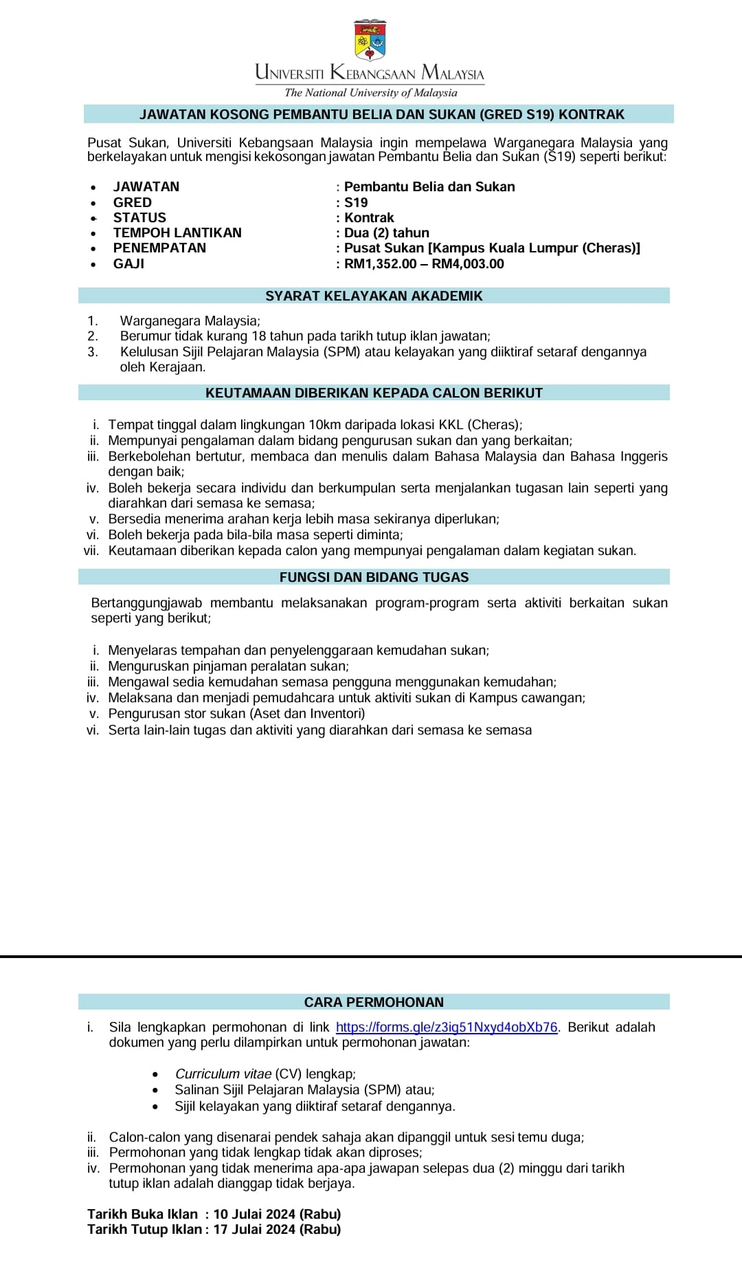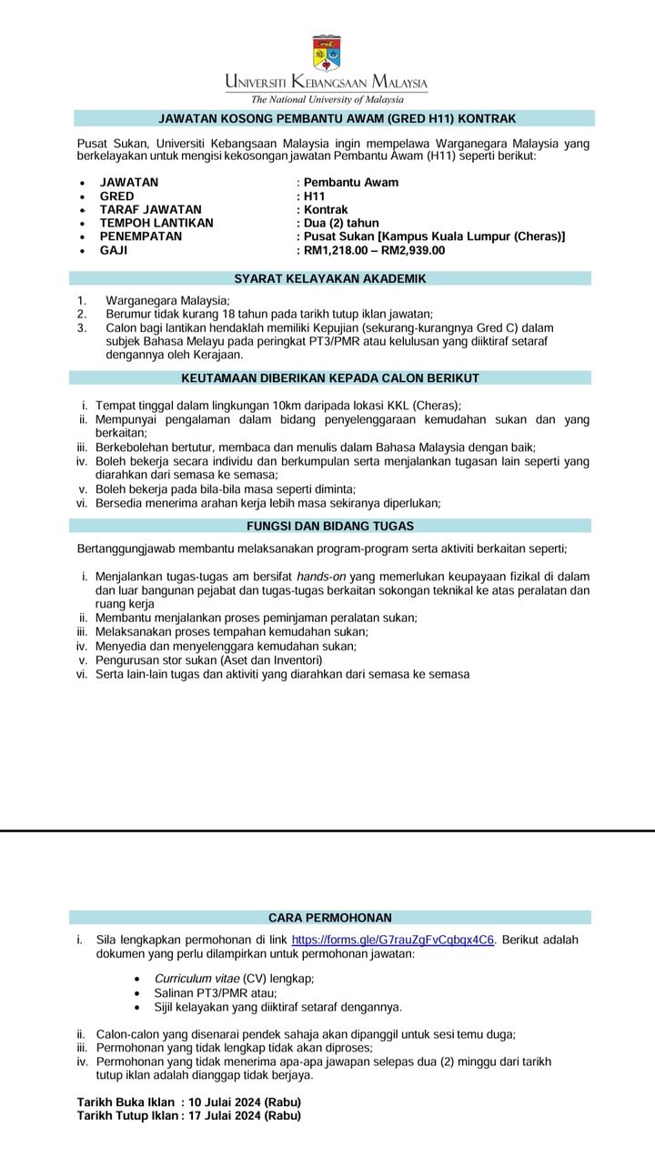 Iklan Kini Jawatan Kosong Universiti Kebangsaan Malaysia (UKM) Klik Jawatan Disini Like serta Ikut Facebook Kami, follow Chanel WhatsApp Jawatan Kosong & Telegram Portal SPA9 untuk capaian pantas kekosongan jawatan daripada kami sekarang.