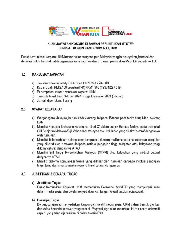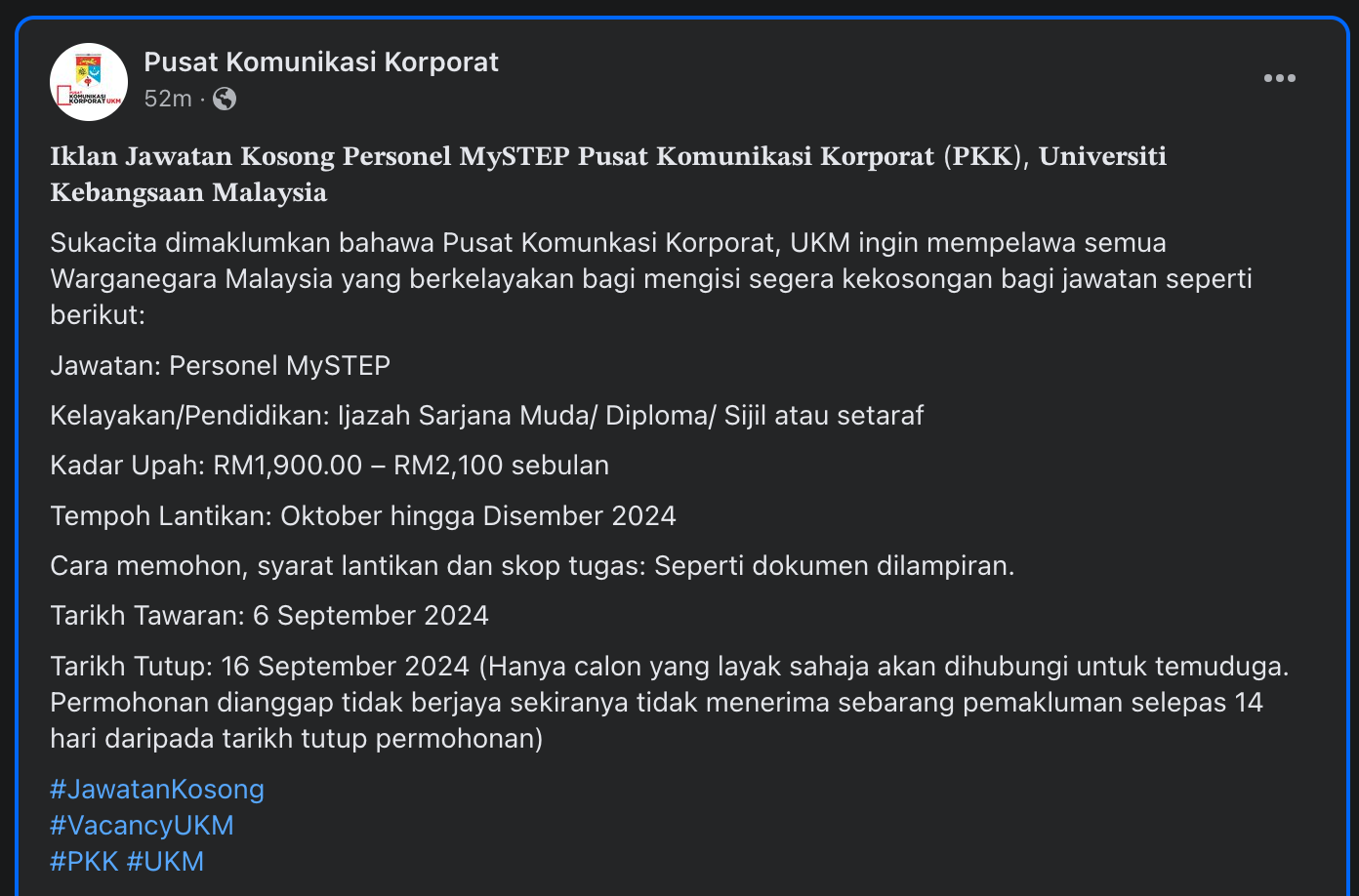 Iklan Kini Jawatan Kosong Universiti Kebangsaan Malaysia (UKM) Like serta Ikut Facebook Kami, follow Chanel WhatsApp Jawatan Kosong & Telegram Portal SPA9 untuk capaian pantas kekosongan jawatan daripada kami sekarang.