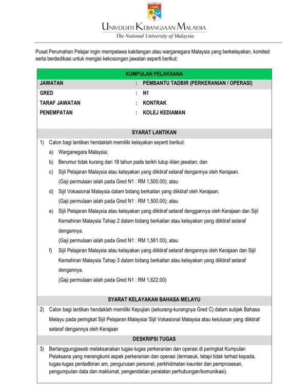 Iklan Kini Jawatan Kosong Universiti Kebangsaan Malaysia (UKM) Klik Jawatan Disini Like serta Ikut Facebook Kami, follow Chanel WhatsApp Jawatan Kosong & Telegram Portal SPA9 untuk capaian pantas kekosongan jawatan daripada kami sekarang.