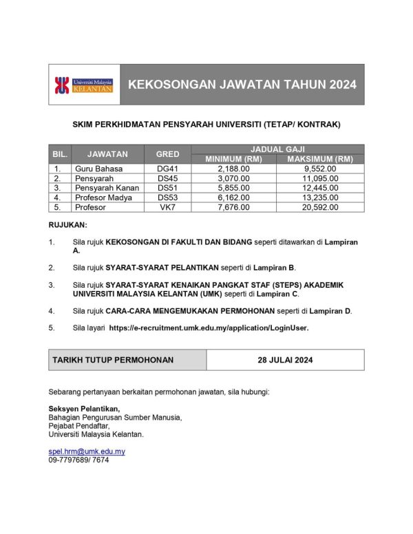 Iklan KIni Jawatan Kosong Universiti Malaysia Kelantan (UMK) Klik Jawatan Disini Like serta Ikut Facebook Kami, follow Chanel WhatsApp Jawatan Kosong & Telegram Portal SPA9 untuk capaian pantas kekosongan jawatan daripada kami sekarang.