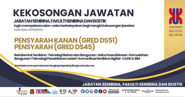 Iklan Kini Jawatan Kosong Universiti Malaysia Kelantan (UMK) Like serta Ikut Facebook Kami, follow Chanel WhatsApp Jawatan Kosong & Telegram Portal SPA9 untuk capaian pantas kekosongan jawatan daripada kami sekarang.