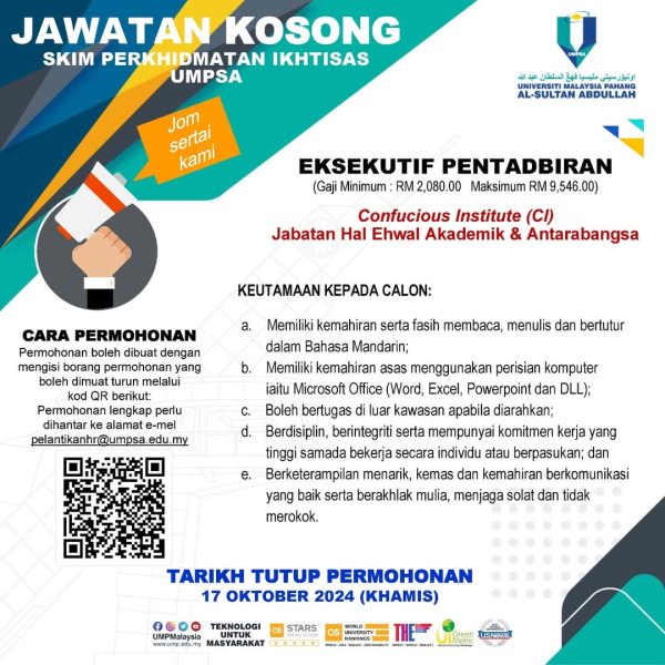 Iklan Kini Jawatan Kosong Universiti Malaysia Pahang (UMP) Klik Jawatan Disini Like serta Ikut Facebook Kami, follow Chanel WhatsApp Jawatan Kosong & Telegram Portal SPA9 untuk capaian pantas kekosongan jawatan daripada kami sekarang.