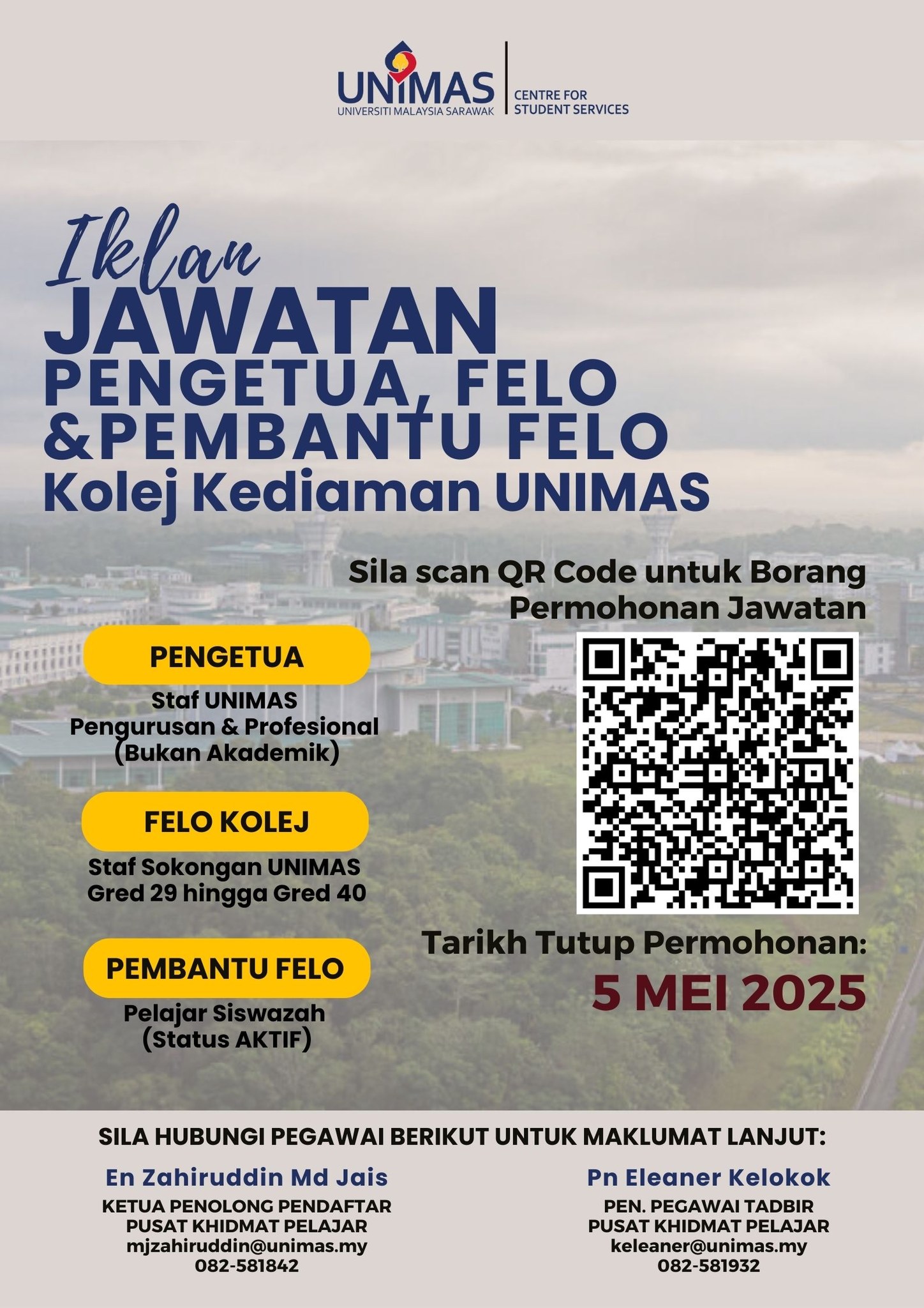 Iklan Kini Jawatan Kosong Universiti Malaysia Sarawak (UNIMAS) Klik Jawatan Disini Like serta Ikut Facebook Kami, follow Chanel WhatsApp Jawatan Kosong & Telegram Portal SPA9 untuk capaian pantas kekosongan jawatan daripada kami sekarang.