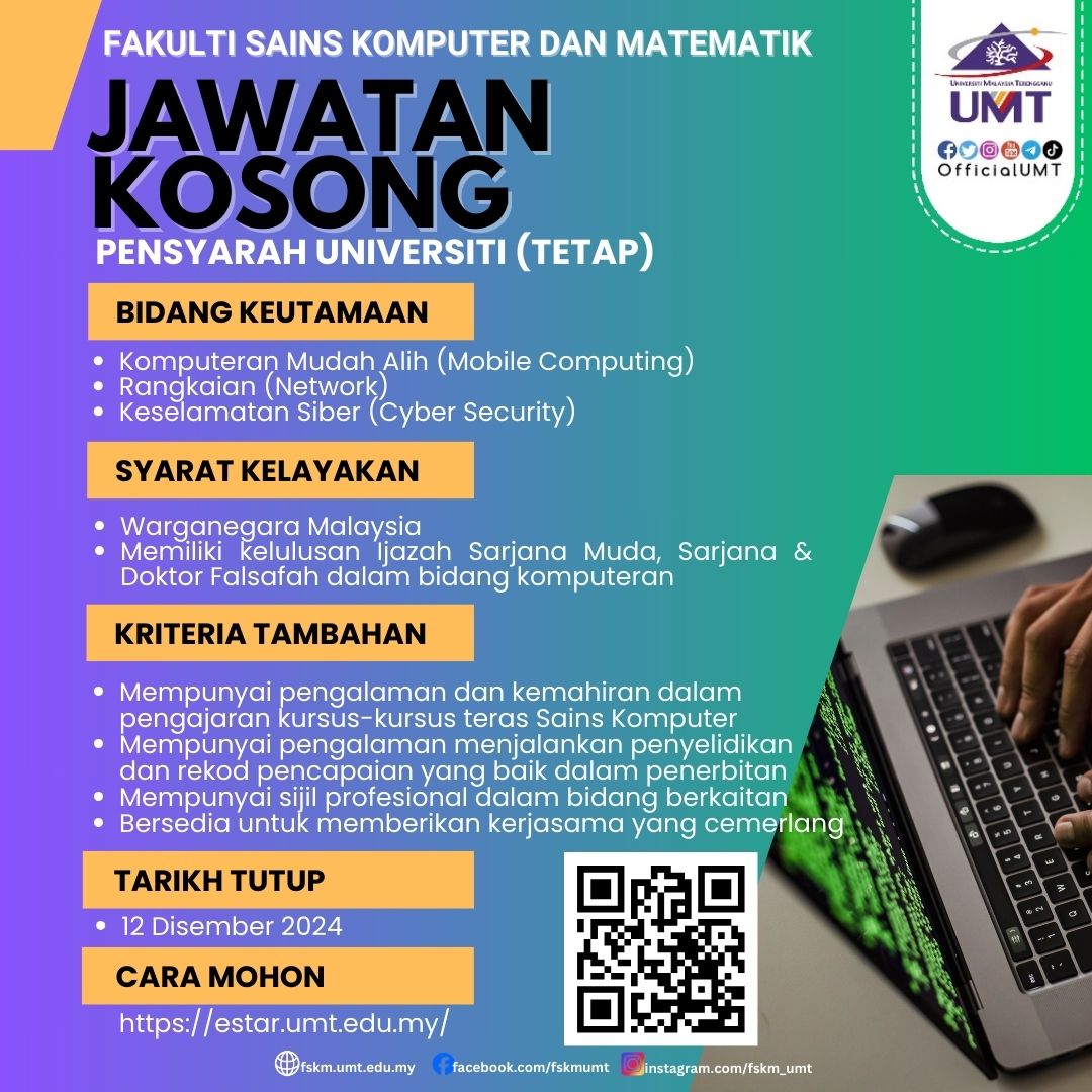 Iklan Kini Jawatan Kosong Universiti Malaysia Terengganu (UMT) Like serta Ikut Facebook Kami, follow Chanel WhatsApp Jawatan Kosong & Telegram Portal SPA9 untuk capaian pantas kekosongan jawatan daripada kami sekarang.