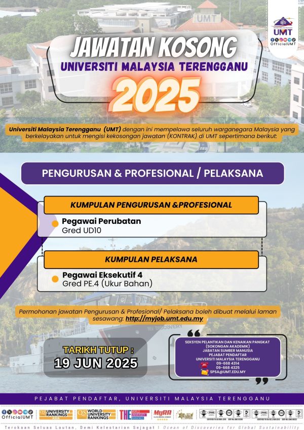 Iklan KIni Jawatan Kosong Universiti Malaysia Terengganu (UMT) Klik Jawatan Disini Like serta Ikut Facebook Kami, follow Chanel WhatsApp Jawatan Kosong & Telegram Portal SPA9 untuk capaian pantas kekosongan jawatan daripada kami sekarang.