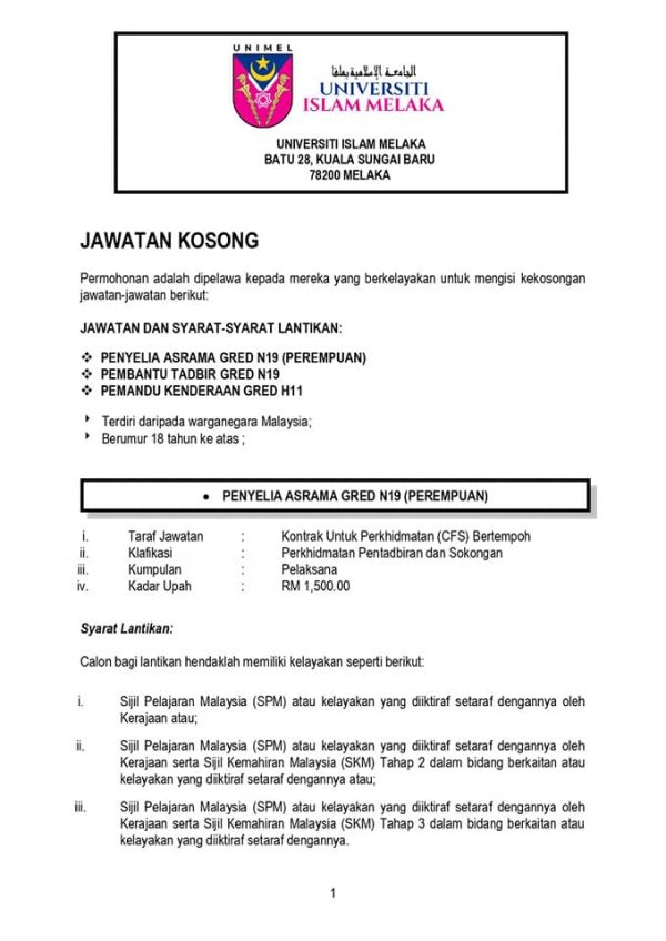 Iklan Kini Jawatan Kosong Universiti Melaka (UNIMEL) Like serta Ikut Facebook Kami, follow Chanel WhatsApp Jawatan Kosong & Telegram Portal SPA9 untuk capaian pantas kekosongan jawatan daripada kami sekarang.
