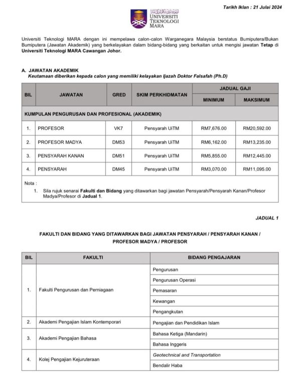 Iklan Kini Jawatan Kosong Universiti Teknologi MARA Johor Like serta Ikut Facebook Kami, follow Chanel WhatsApp Jawatan Kosong & Telegram Portal SPA9 untuk capaian pantas kekosongan jawatan daripada kami sekarang. Iklan Jawatan