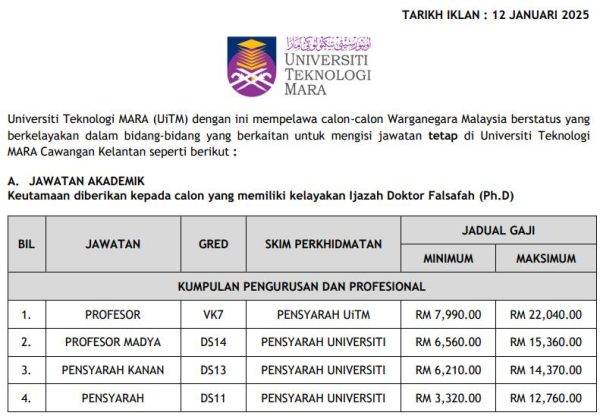 Iklan Kini Jawatan Kosong Universiti Teknologi MARA (UiTM) Cawangan Kelantan Like serta Ikut Facebook Kami, follow Chanel WhatsApp Jawatan Kosong & Telegram Portal SPA9 untuk capaian pantas kekosongan jawatan daripada kami sekarang. Klik Iklan Jawatan