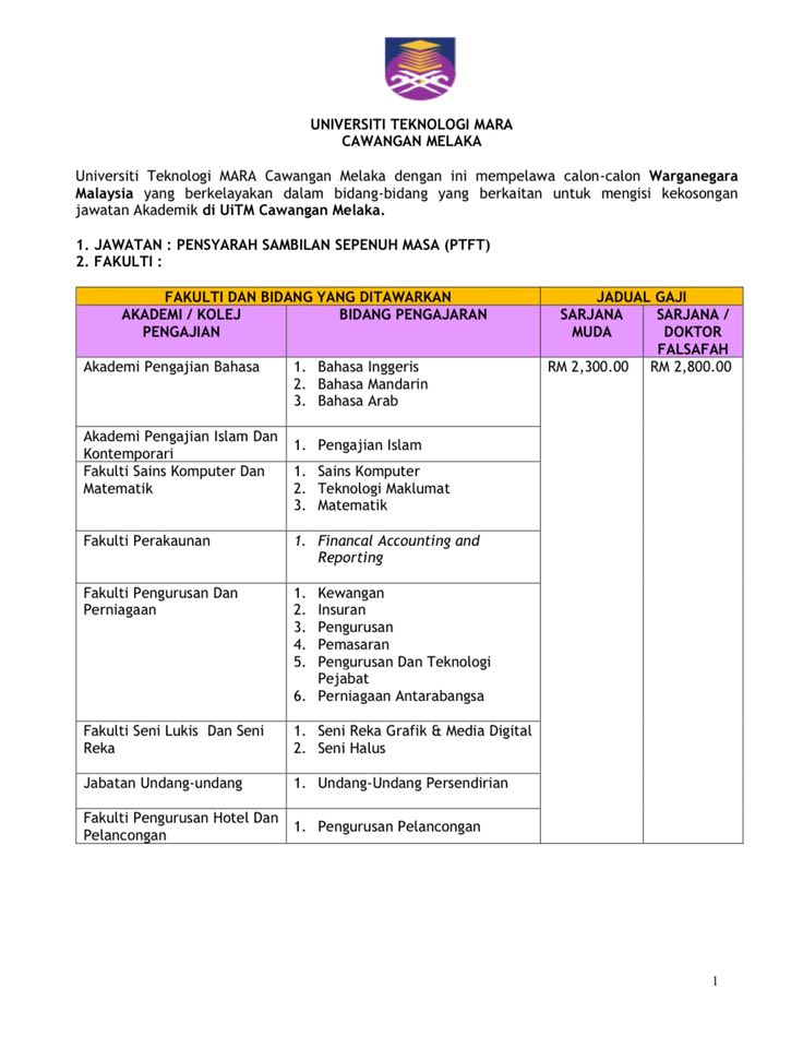 Iklan Kini Jawatan Kosong Universiti Teknologi Mara (UiTM) Cawangan Melaka Klik Iklan Disini Like serta Ikut Facebook Kami, follow Chanel WhatsApp Jawatan Kosong & Telegram Portal SPA9 untuk capaian pantas kekosongan jawatan daripada kami sekarang.