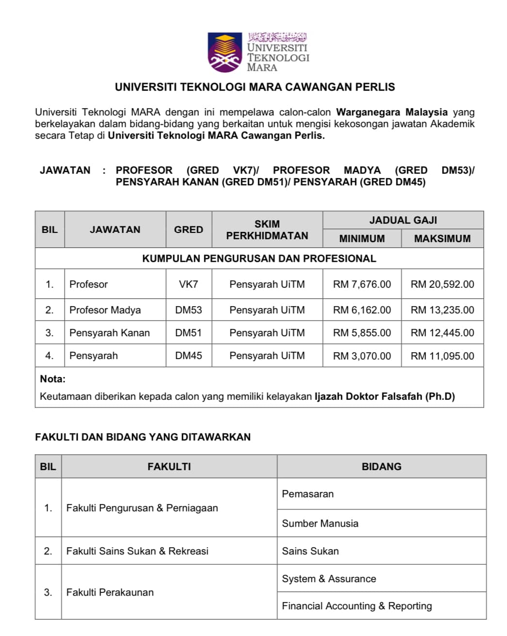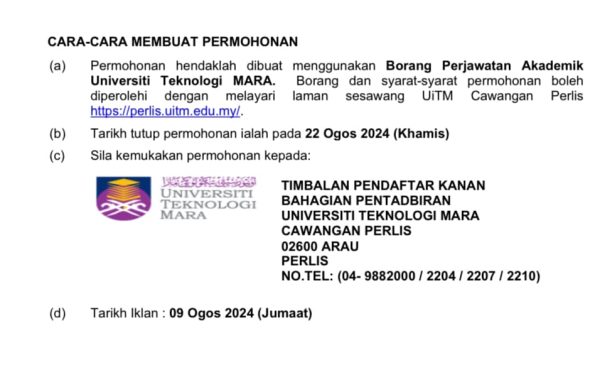 Iklan Kini Jawatan Kosong Universiti Teknologi MARA (UiTM) Perlis Like serta Ikut Facebook Kami, follow Chanel WhatsApp Jawatan Kosong & Telegram Portal SPA9 untuk capaian pantas kekosongan jawatan daripada kami sekarang. Klik Jawatan Disini