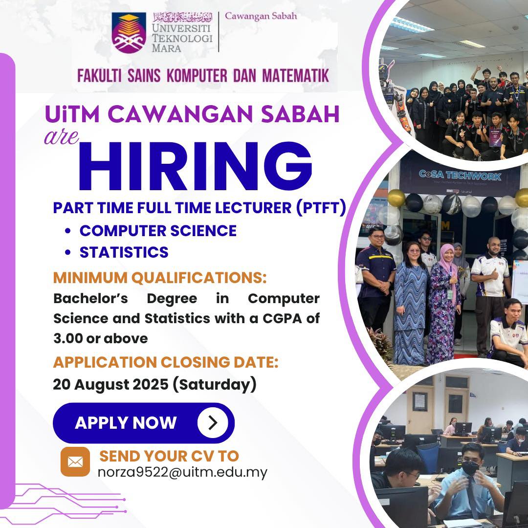 Iklan Kini Jawatan Kosong Universiti Teknologi MARA (UiTM) Sabah Like serta Ikut Facebook Kami, follow Chanel WhatsApp Jawatan Kosong & Telegram Portal SPA9 untuk capaian pantas kekosongan jawatan daripada kami sekarang. Klik Jawatan Disini
