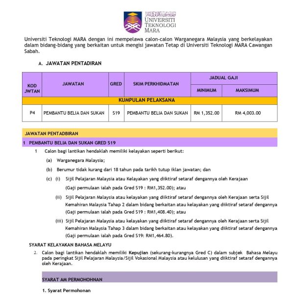 Iklan Kini Jawatan Kosong Universiti Teknologi MARA (UiTM) Sabah Like serta Ikut Facebook Kami, follow Chanel WhatsApp Jawatan Kosong & Telegram Portal SPA9 untuk capaian pantas kekosongan jawatan daripada kami sekarang. Klik Jawatan Disini