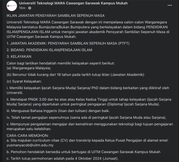 Iklan Kini Jawatan Kosong Universiti Teknologi Mara (UiTM) Sarawak Like serta Ikut Facebook Kami, follow Chanel WhatsApp Jawatan Kosong & Telegram Portal SPA9 untuk capaian pantas kekosongan jawatan daripada kami sekarang. Klik Jawatan Disini