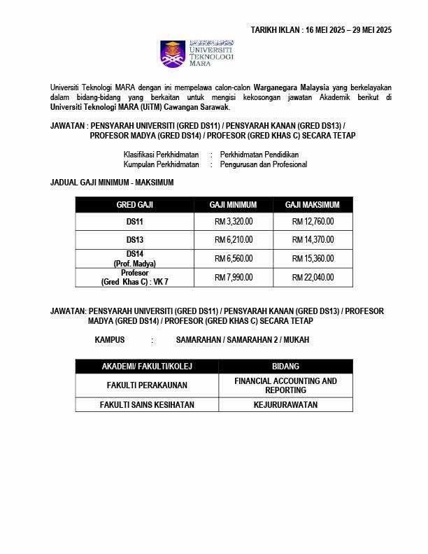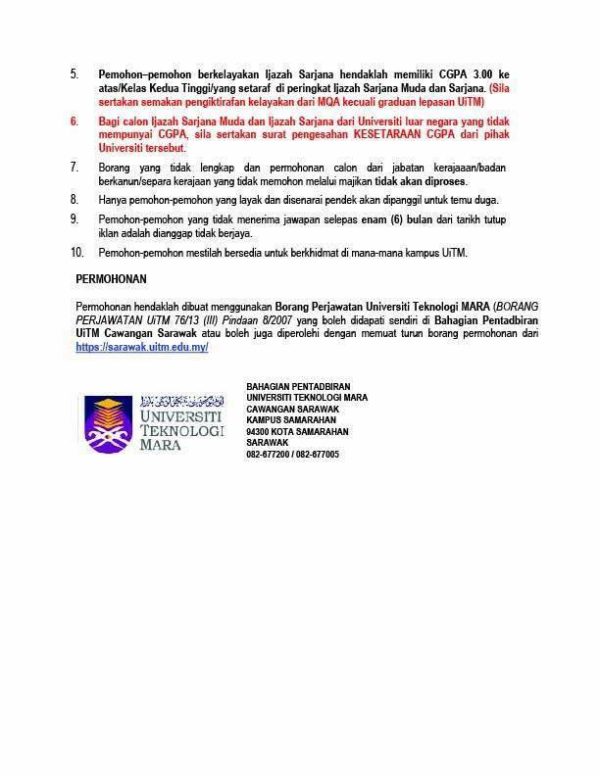 Iklan Kini Jawatan Kosong Universiti Teknologi Mara (UiTM) Sarawak Like serta Ikut Facebook Kami, follow Chanel WhatsApp Jawatan Kosong & Telegram Portal SPA9 untuk capaian pantas kekosongan jawatan daripada kami sekarang.