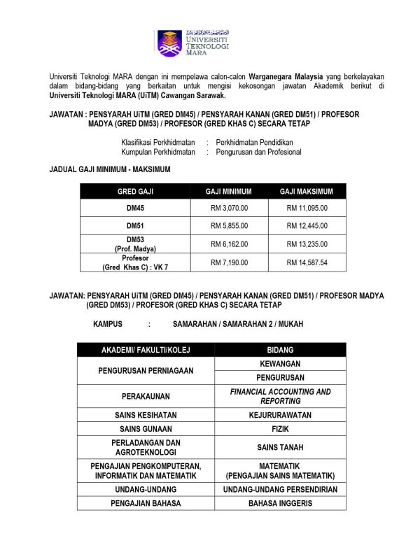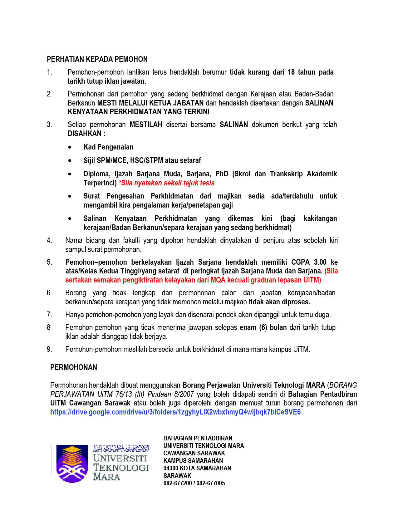 Iklan Kini Jawatan Kosong Universiti Teknologi Mara (UiTM) Sarawak Klik Jawatan Disini Like serta Ikut Facebook Kami, follow Chanel WhatsApp Jawatan Kosong & Telegram Portal SPA9 untuk capaian pantas kekosongan jawatan daripada kami sekarang.