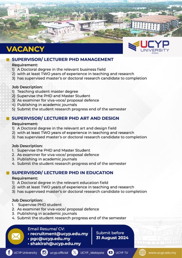 Iklan Kini Jawatan Kosong Universiti UCYP Like serta Ikut Facebook Kami, follow Chanel WhatsApp Jawatan Kosong & Telegram Portal SPA9 untuk capaian pantas kekosongan jawatan daripada kami sekarang. Klik Jawatan Disini