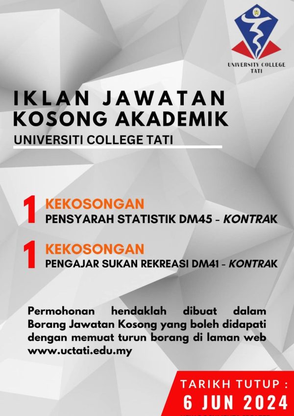 Iklan Kini Jawatan Kosong University College TATI Like serta Ikut Facebook Kami, follow Chanel WhatsApp Jawatan Kosong & Telegram Portal SPA9 untuk capaian pantas kekosongan jawatan daripada kami sekarang. Klik Jawatan Disini