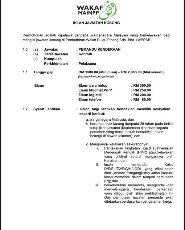 Iklan Kini Jawatan Kosong Wakaf Pulau Pinang Klik Iklan Jawatan Like serta Ikut Facebook Kami, follow Chanel WhatsApp Jawatan Kosong & Telegram Portal SPA9 untuk capaian pantas kekosongan jawatan daripada kami sekarang.
