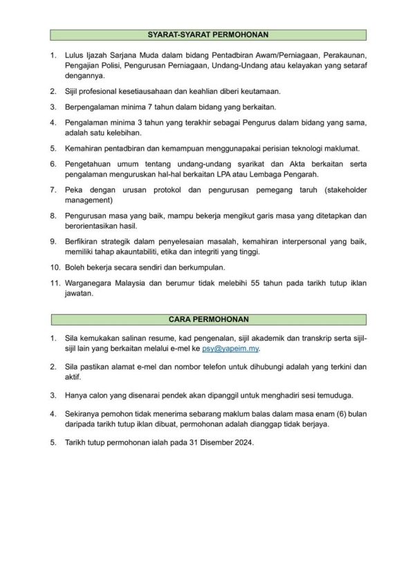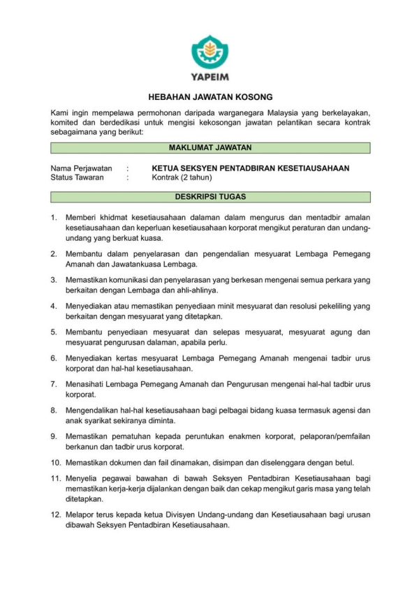 Iklan Kini Jawatan Kosong Yayasan Pembangunan Ekonomi Islam Malaysia (YaPEIM) Klik Iklan Jawatan Like serta Ikut Facebook Kami, follow Chanel WhatsApp Jawatan Kosong & Telegram Portal SPA9 untuk capaian pantas kekosongan jawatan daripada kami sekarang.