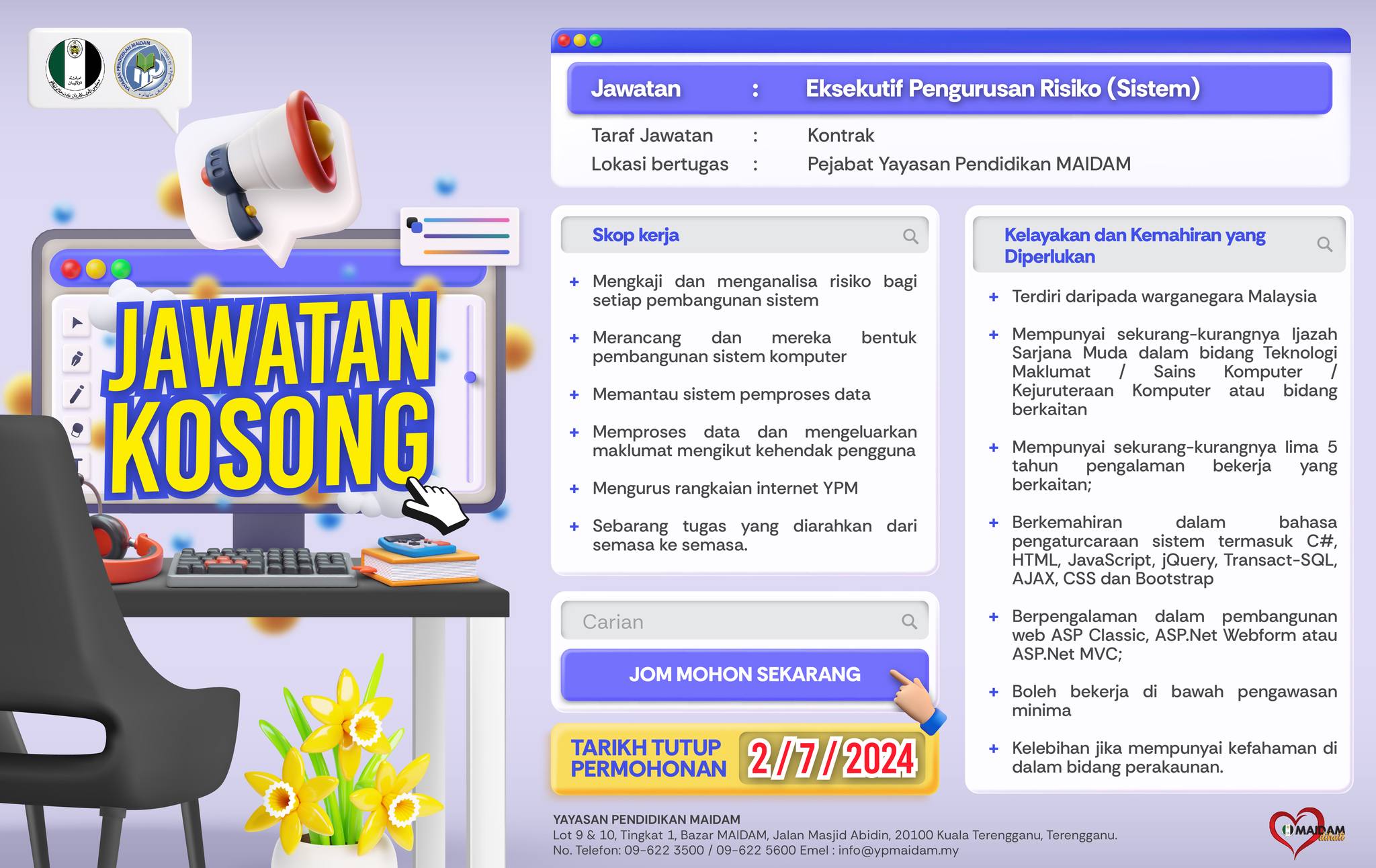 Iklan Kini Jawatan Kosong Yayasan Pendidikan Maidam Like serta Ikut Facebook Kami, follow Chanel WhatsApp Jawatan Kosong & Telegram Portal SPA9 untuk capaian pantas kekosongan jawatan daripada kami sekarang. Klik Jawatan Disini
