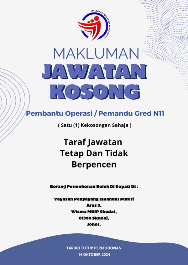 Iklan Kini Jawatan Kosong Yayasan Penyayang Iskandar Puteri Like serta Ikut Facebook Kami, follow Chanel WhatsApp Jawatan Kosong & Telegram Portal SPA9 untuk capaian pantas kekosongan jawatan daripada kami sekarang. Klik Jawatan Disini