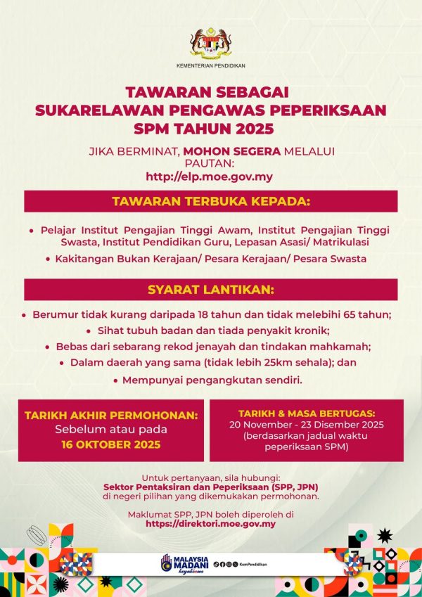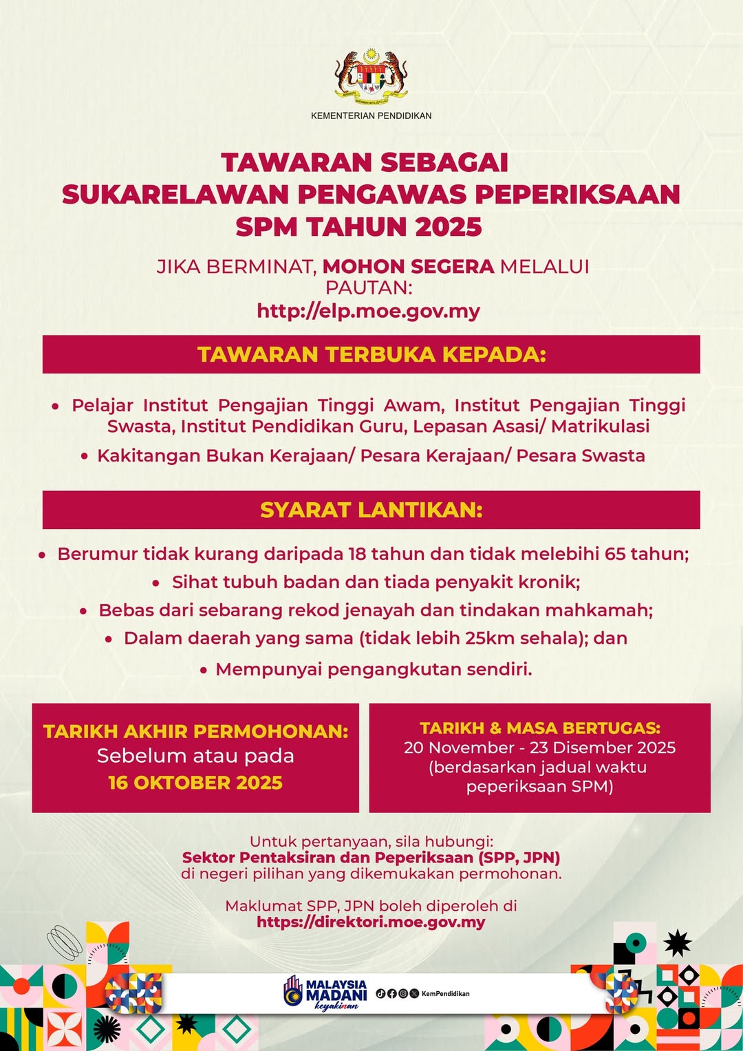 Iklan Kini Jawatan Lembaga Peperiksaan Like serta Ikut Facebook Kami, follow Chanel WhatsApp Jawatan Kosong & Telegram Portal SPA9 untuk capaian pantas kekosongan jawatan daripada kami sekarang. Klik Iklan Jawatan