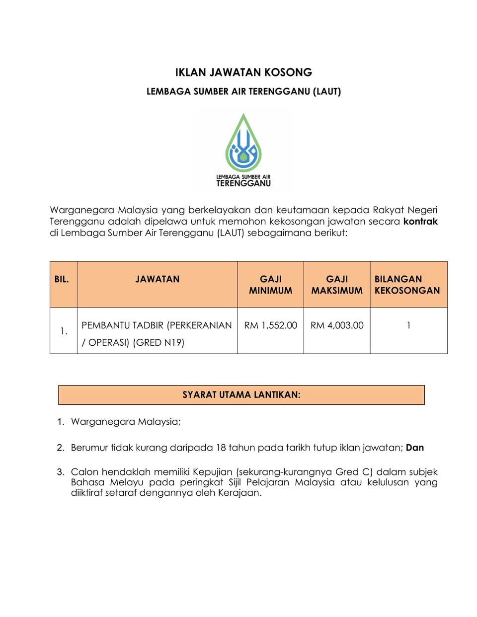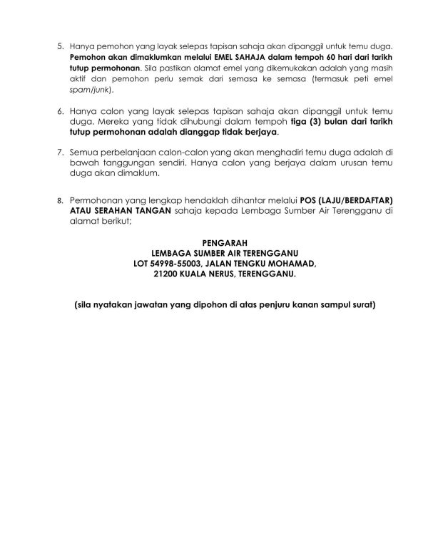 Iklan Kini Jawatan Lembaga Sumber Air Terengganu Klik Jawatan Disini Like serta Ikut Facebook Kami, follow Chanel WhatsApp Jawatan Kosong & Telegram Portal SPA9 untuk capaian pantas kekosongan jawatan daripada kami sekarang.