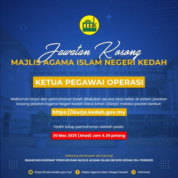 Iklan Kini Jawatan Majlis Agama Islam Negeri Kedah Like serta Ikut Facebook Kami, follow Chanel WhatsApp Jawatan Kosong & Telegram Portal SPA9 untuk capaian pantas kekosongan jawatan daripada kami sekarang. Klik Jawatan Disini