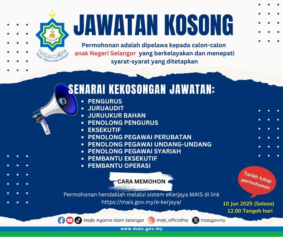 Iklan Kini Jawatan Majlis Agama Islam Selangor (MAIS) Like serta Ikut Facebook Kami, follow Chanel WhatsApp Jawatan Kosong & Telegram Portal SPA9 untuk capaian pantas kekosongan jawatan daripada kami sekarang. Klik Jawatan Disini