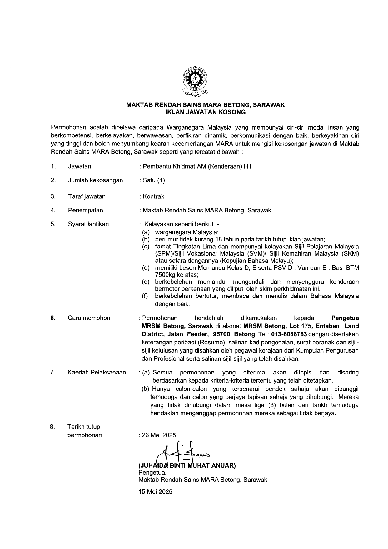 Iklan Kini Jawatan MRSM BETONG Klik Jawatan Disini Like serta Ikut Facebook Kami, follow Chanel WhatsApp Jawatan Kosong & Telegram Portal SPA9 untuk capaian pantas kekosongan jawatan daripada kami sekarang.