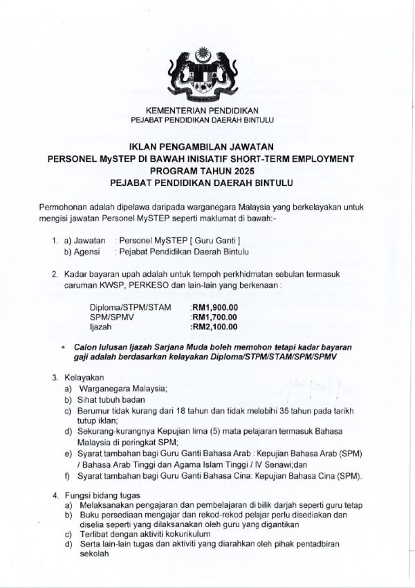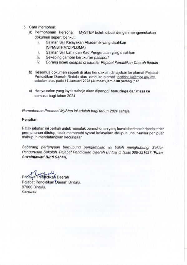 Iklan Kini Jawatan Pejabat Pendidikan Daerah Bintulu Klik Iklan Jawatan Like serta Ikut Facebook Kami, follow Chanel WhatsApp Jawatan Kosong & Telegram Portal SPA9 untuk capaian pantas kekosongan jawatan daripada kami sekarang.