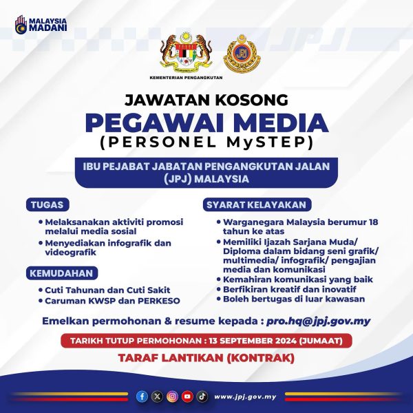 Iklan Kini Jawatan Pengambilan personel MySTEP di Bahagian Korporat dan Perancangan Strategik Like serta Ikut Facebook Kami, follow Chanel WhatsApp Jawatan Kosong & Telegram Portal SPA9 untuk capaian pantas kekosongan jawatan daripada kami sekarang.