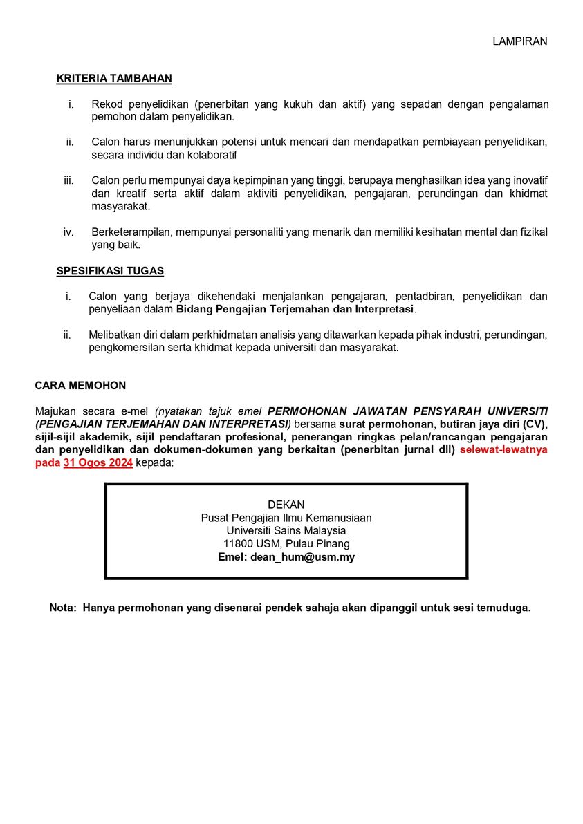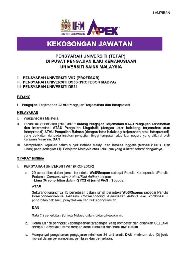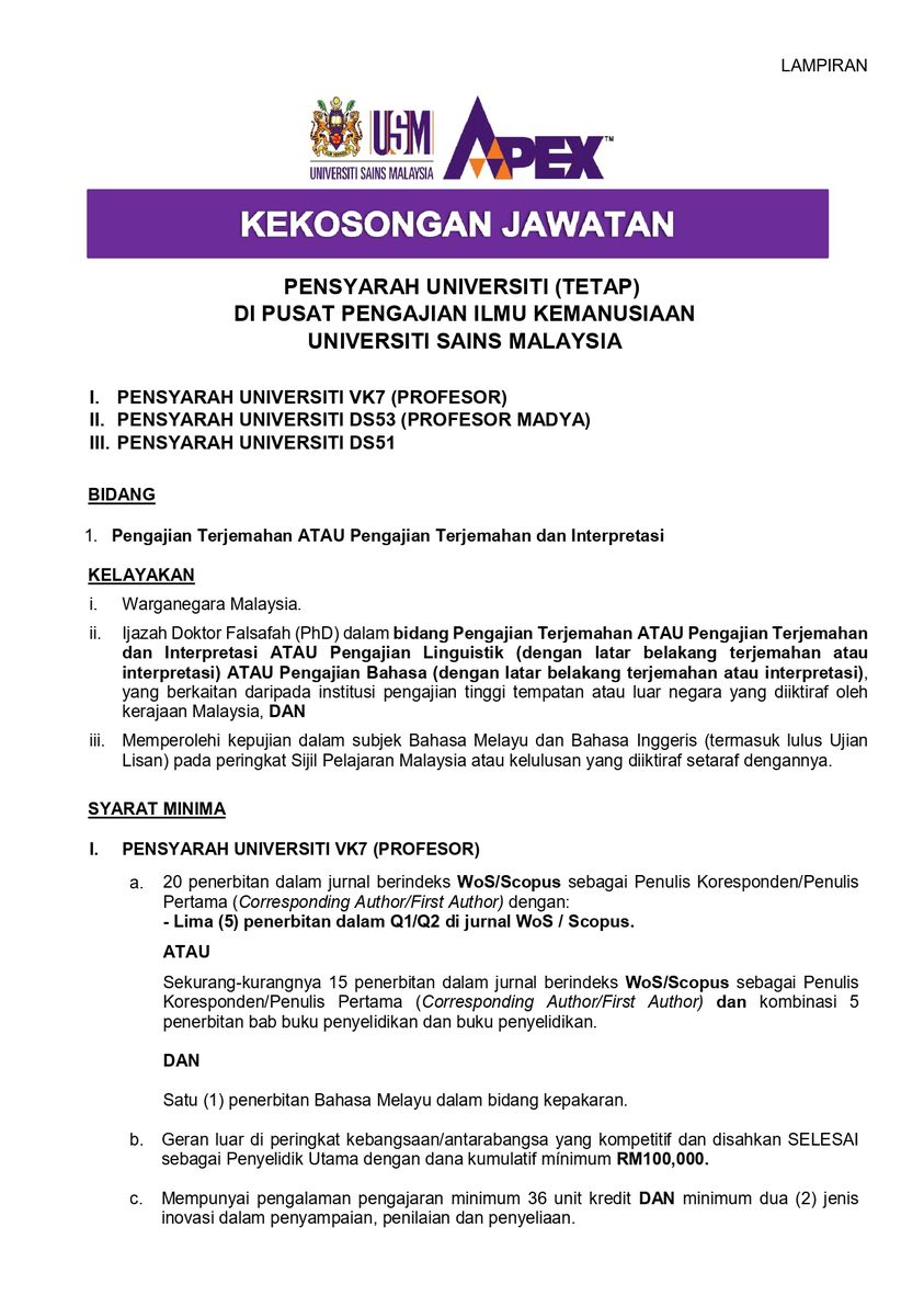Iklan kini Jawatan Pensyarah Universiti (Tetap) USM Klik Jawatan Disini Like serta Ikut Facebook Kami, follow Chanel WhatsApp Jawatan Kosong & Telegram Portal SPA9 untuk capaian pantas kekosongan jawatan daripada kami sekarang.
