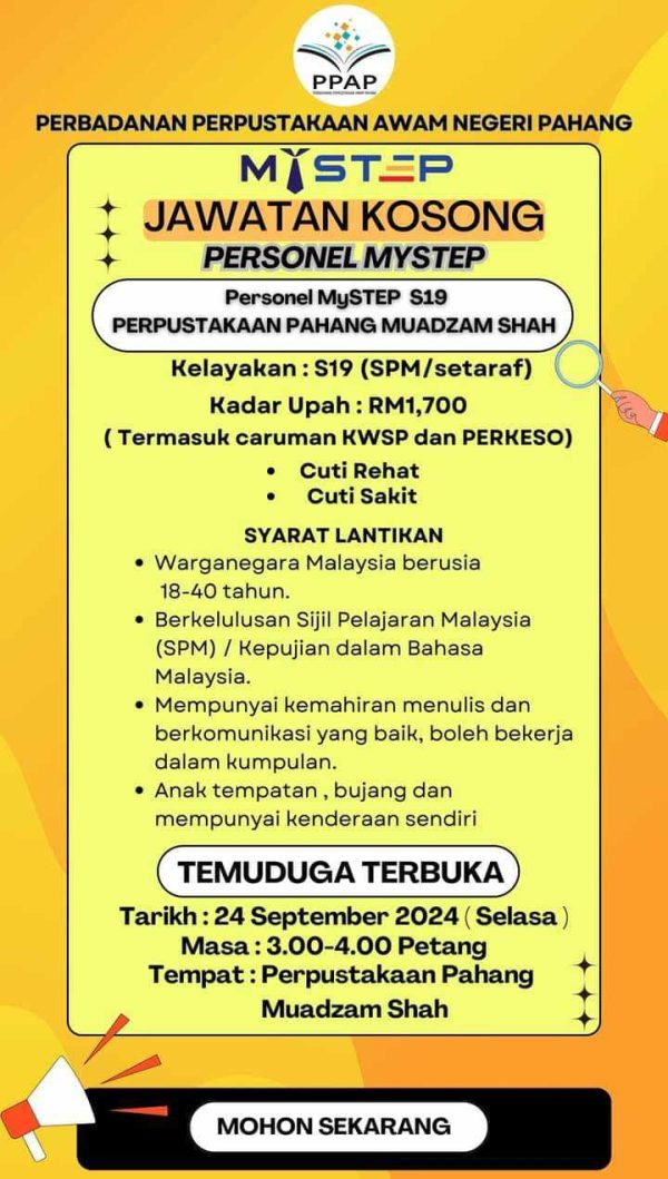 Iklan Kini Jawatan Perpustakaan Pahang Like serta Ikut Facebook Kami, follow Chanel WhatsApp Jawatan Kosong & Telegram Portal SPA9 untuk capaian pantas kekosongan jawatan daripada kami sekarang.