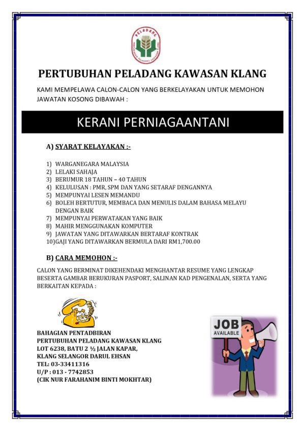 Iklan Kini Jawatan Pertubuhan Peladang Kawasan Klang Like serta Ikut Facebook Kami, follow Chanel WhatsApp Jawatan Kosong & Telegram Portal SPA9 untuk capaian pantas kekosongan jawatan daripada kami sekarang. Klik Jawatan Disini