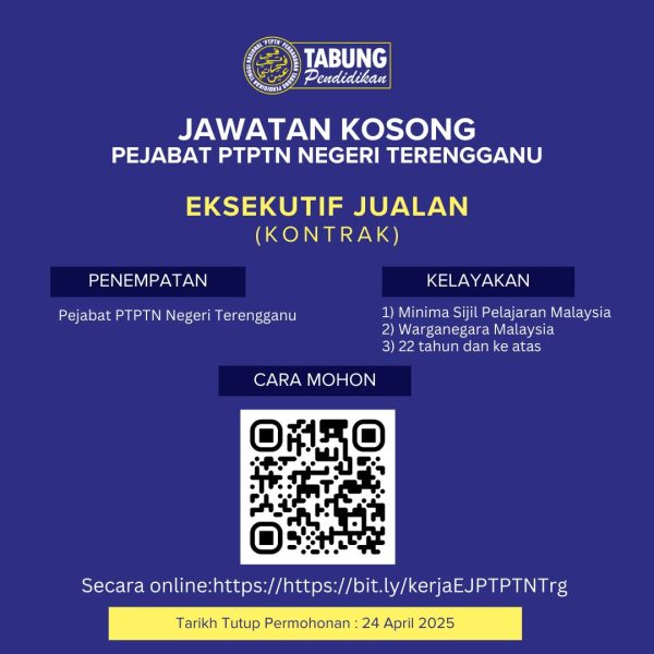 Iklan Kini Jawatan PTPTN Negeri Terengganu Klik Jawatan Disini Like serta Ikut Facebook Kami, follow Chanel WhatsApp Jawatan Kosong & Telegram Portal SPA9 untuk capaian pantas kekosongan jawatan daripada kami sekarang.