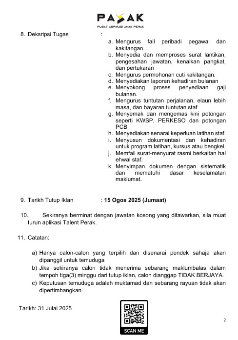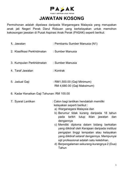 Iklan Kini Jawatan Pusat Aspirasi Anak Perak (PASAK) Like serta Ikut Facebook Kami, follow Chanel WhatsApp Jawatan Kosong & Telegram Portal SPA9 untuk capaian pantas kekosongan jawatan daripada kami sekarang. Klik Jawatan Disini