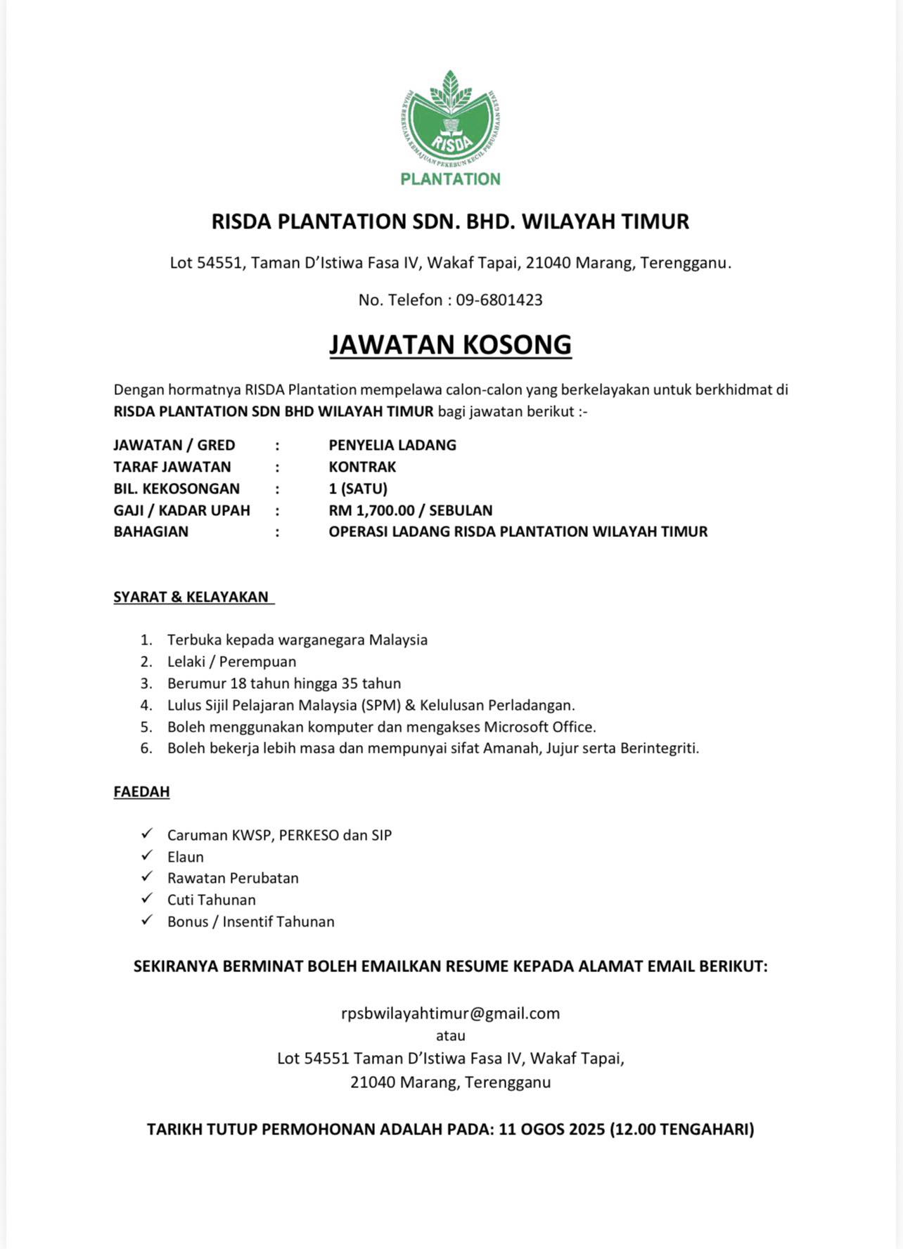 Iklan Kini Jawatan RISDA Plantation Like serta Ikut Facebook Kami, follow Chanel WhatsApp Jawatan Kosong & Telegram Portal SPA9 untuk capaian pantas kekosongan jawatan daripada kami sekarang. Klik Jawatan Disini