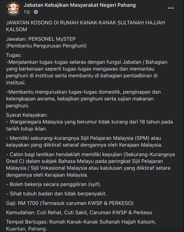 Iklan Kini Jawatan Rumah Kanak-Kanak Sultanah Hajjah Kalsom Like serta Ikut Facebook Kami, follow Chanel WhatsApp Jawatan Kosong & Telegram Portal SPA9 untuk capaian pantas kekosongan jawatan daripada kami sekarang. Klik Jawatan Disini
