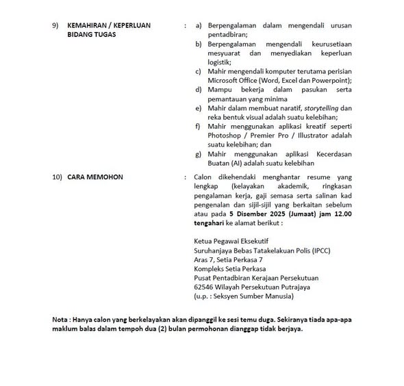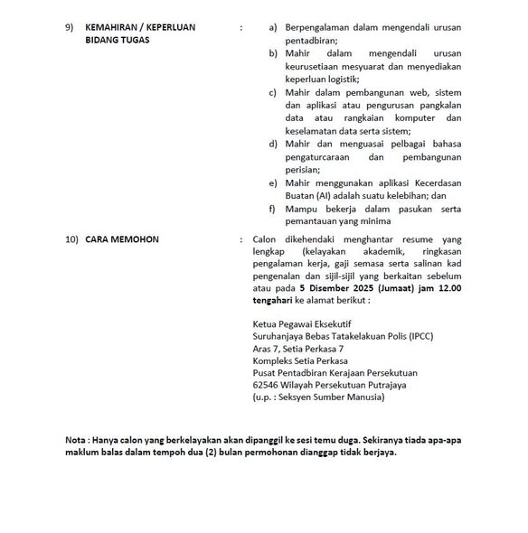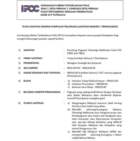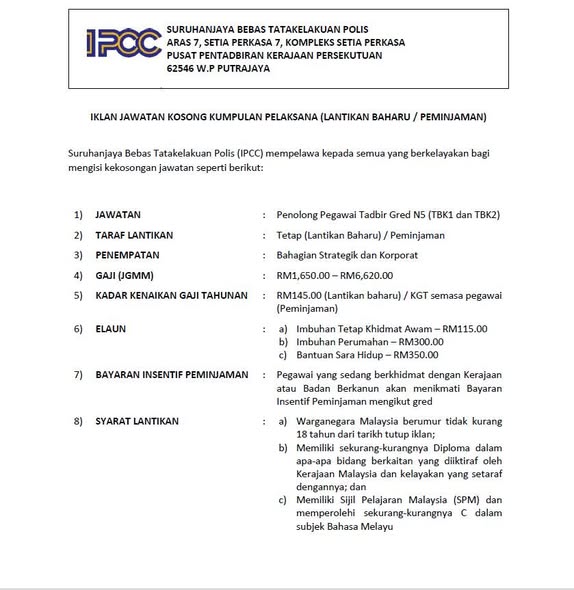 Iklan Kini Jawatan Suruhanjaya Bebas Tatakelakuan Polis Iklan Jawatan Like serta Ikut Facebook Kami, follow Chanel WhatsApp Jawatan Kosong & Telegram Portal SPA9 untuk capaian pantas kekosongan jawatan daripada kami sekarang.