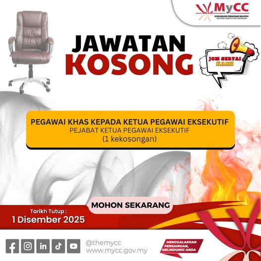 Iklan Kini Jawatan Suruhanjaya Persaingan Malaysia (MyCC) Like serta Ikut Facebook Kami, follow Chanel WhatsApp Jawatan Kosong & Telegram Portal SPA9 untuk capaian pantas kekosongan jawatan daripada kami sekarang. Iklan Jawatan