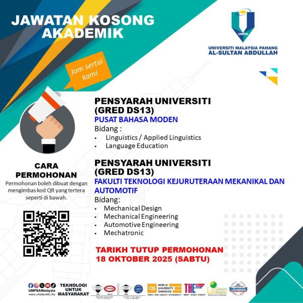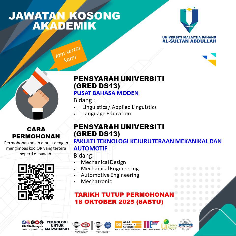 Iklan Kini Jawatan Universiti Malaysia Pahang Like serta Ikut Facebook Kami, follow Chanel WhatsApp Jawatan Kosong & Telegram Portal SPA9 untuk capaian pantas kekosongan jawatan daripada kami sekarang. Klik Iklan Jawatan