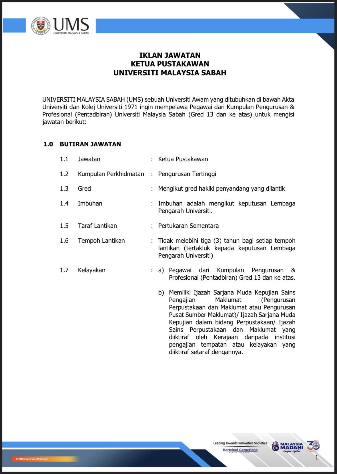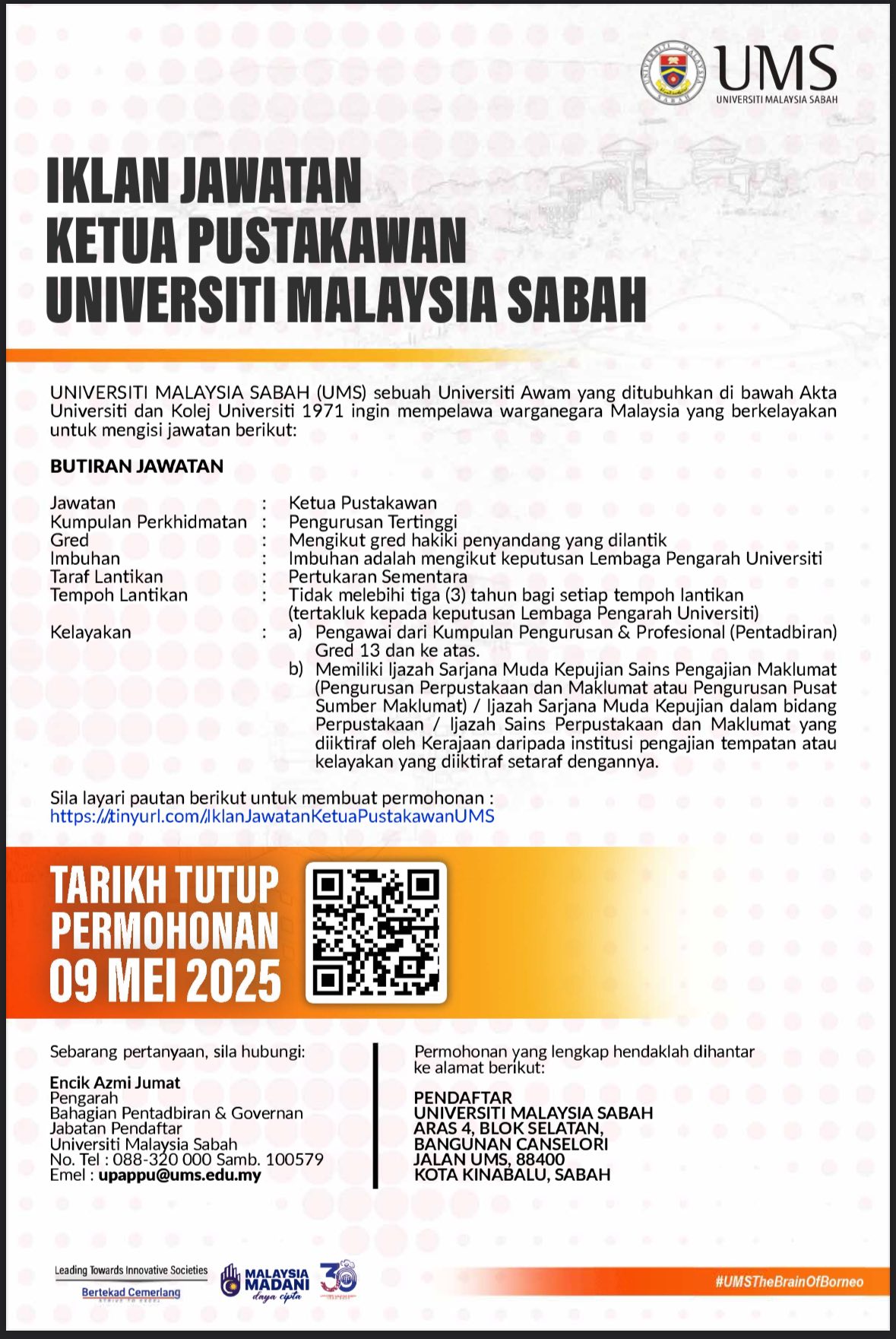 Iklan Kini Jawatan Universiti Malaysia Sabah Like serta Ikut Facebook Kami, follow Chanel WhatsApp Jawatan Kosong & Telegram Portal SPA9 untuk capaian pantas kekosongan jawatan daripada kami sekarang.