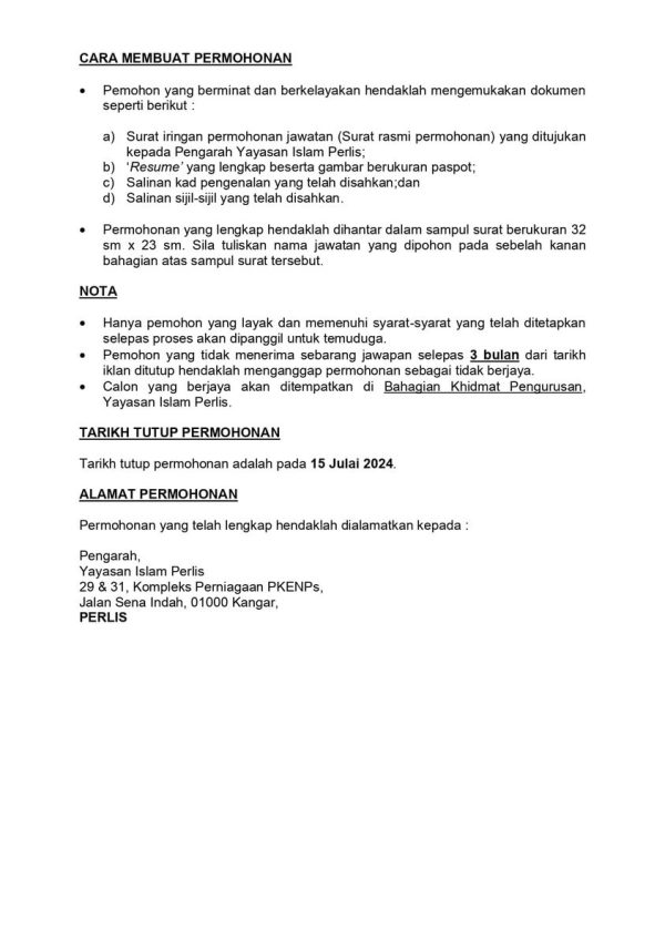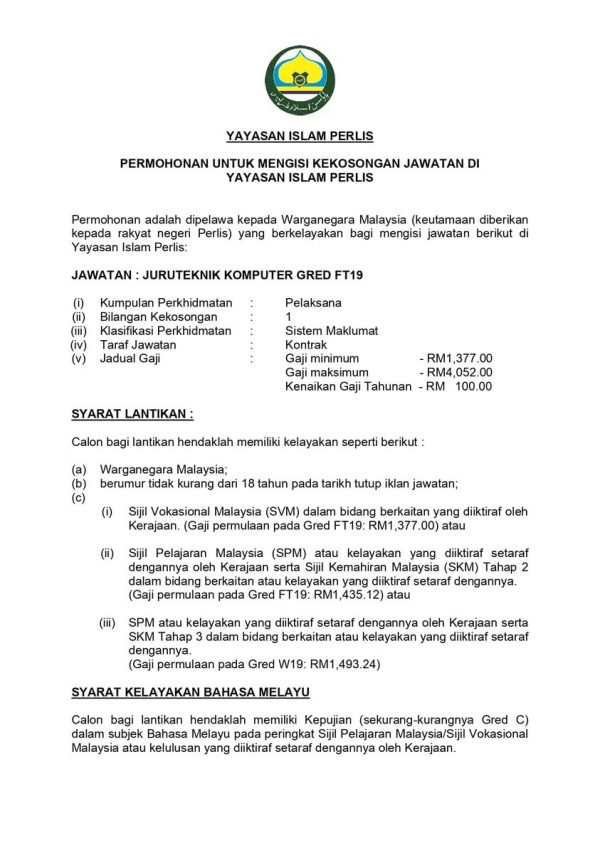 Iklan Kini Jawatan Yayasan Islam Perlis Klik Jawatan Disini Like serta Ikut Facebook Kami, follow Chanel WhatsApp Jawatan Kosong & Telegram Portal SPA9 untuk capaian pantas kekosongan jawatan daripada kami sekarang.
