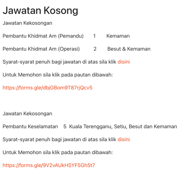 Iklan Kini Jawatan Yayasan Islam Terengganu Like serta Ikut Facebook Kami, follow Chanel WhatsApp Jawatan Kosong & Telegram Portal SPA9 untuk capaian pantas kekosongan jawatan daripada kami sekarang. Klik Jawatan Disini