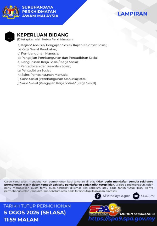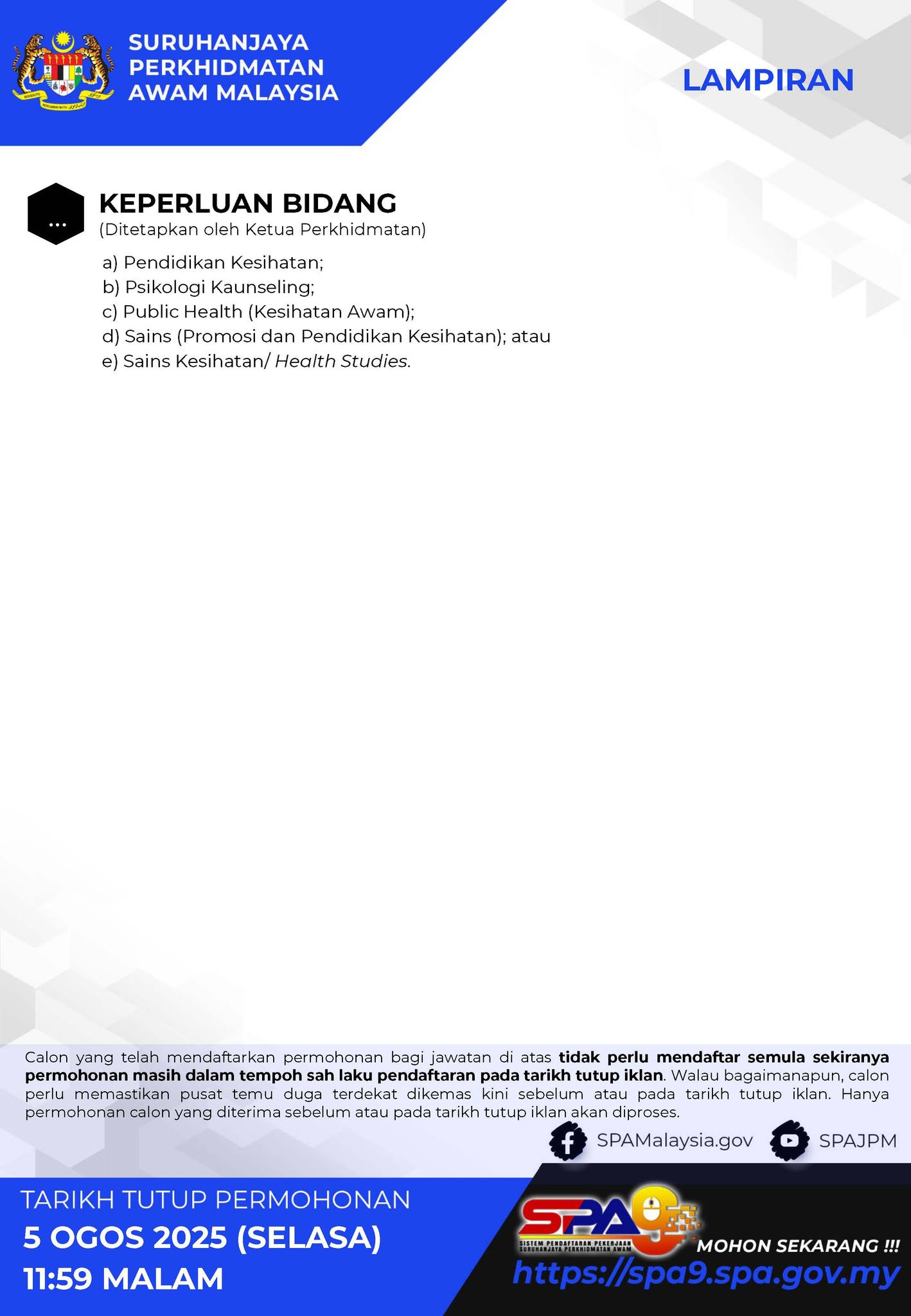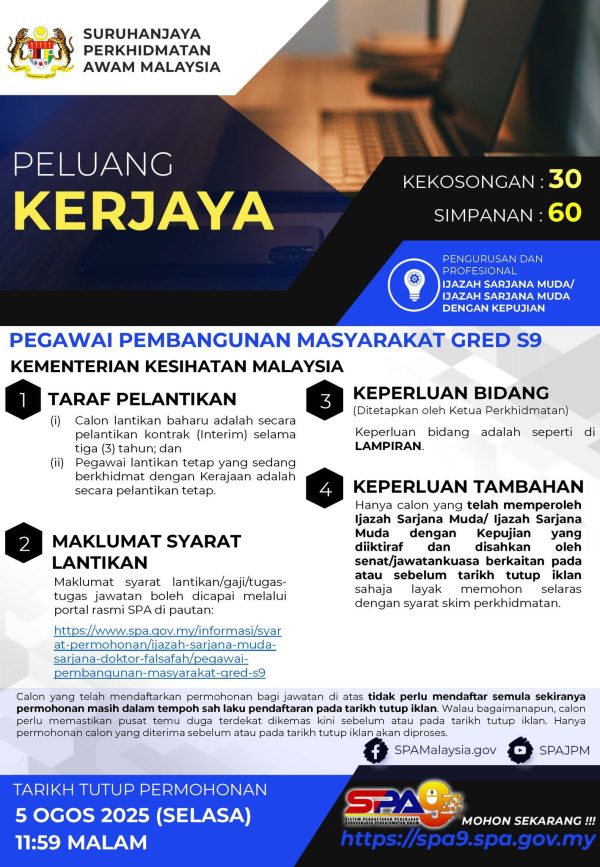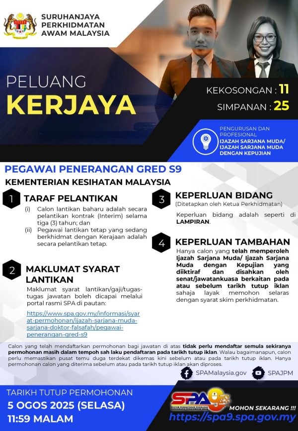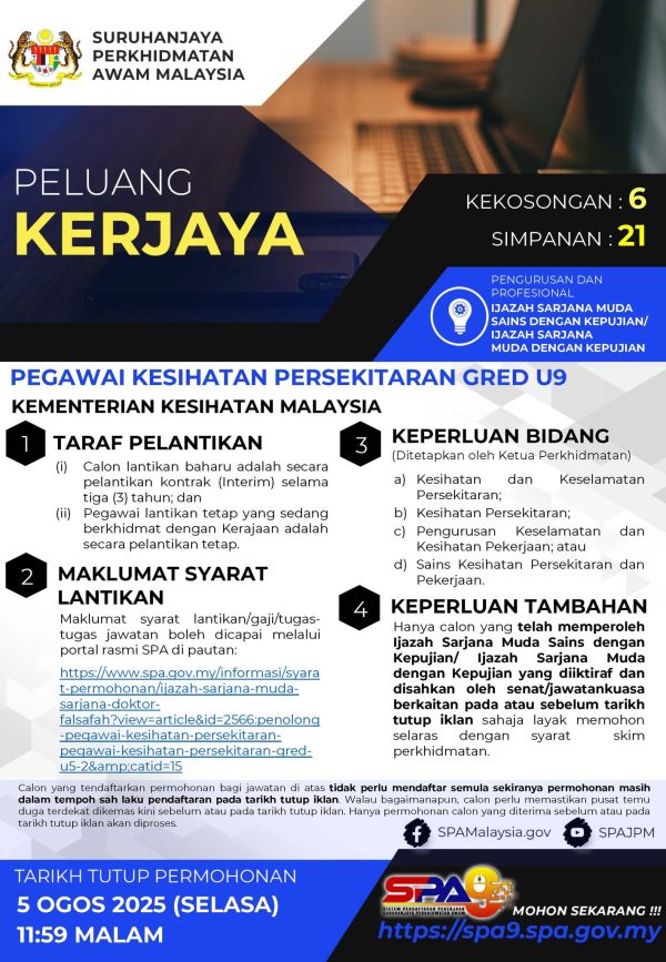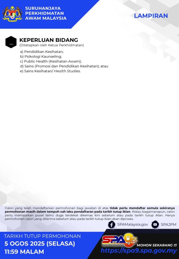 IKlan Kini Kementerian Kesihatan Malaysia Klik Jawatan Disini Like serta Ikut Facebook Kami, follow Chanel WhatsApp Jawatan Kosong & Telegram Portal SPA9 untuk capaian pantas kekosongan jawatan daripada kami sekarang.